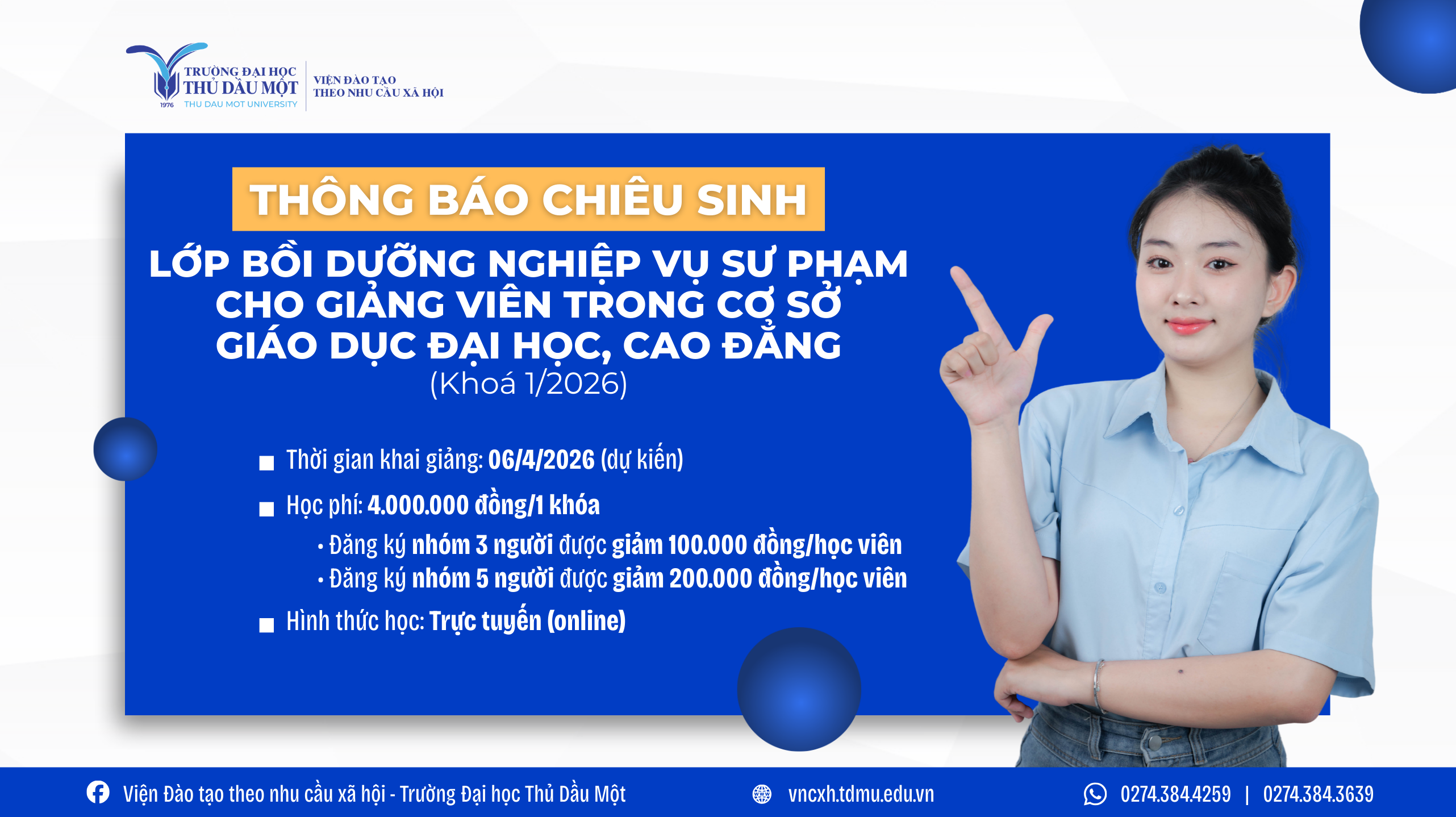 THÔNG BÁO CHIÊU SINH LỚP BỒI DƯỠNG NGHIỆP VỤ SƯ PHẠM CHO GIẢNG VIÊN TRONG CƠ SỞ GIÁO DỤC ĐẠI HỌC, CAO ĐẲNG - KHOÁ 1/2026
