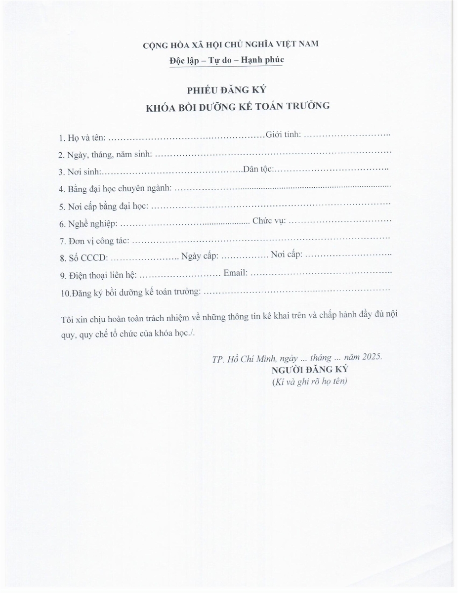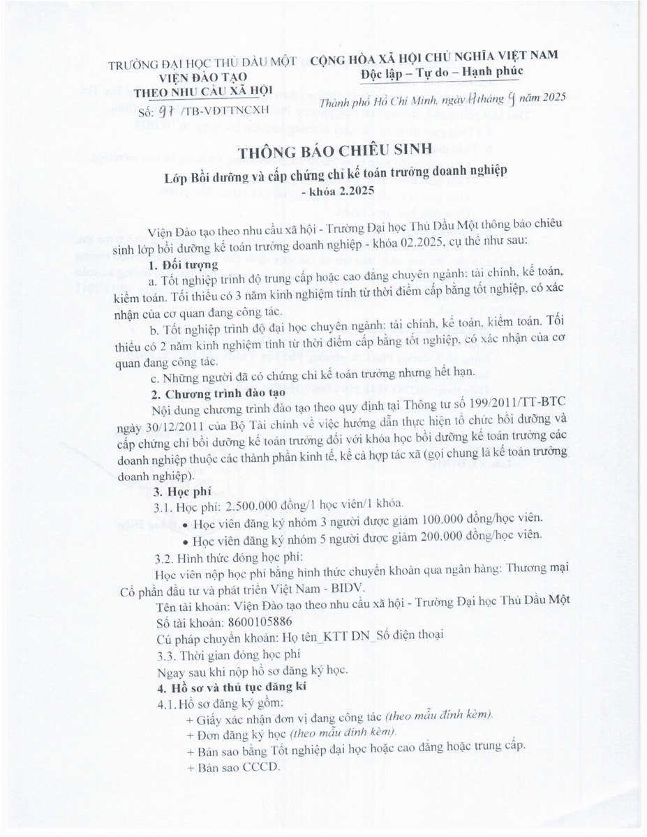 Thông báo chiêu sinh Lớp Bồi dưỡng và cấp chứng chỉ kế toán trưởng doanh nghiệp - khóa 2.2025