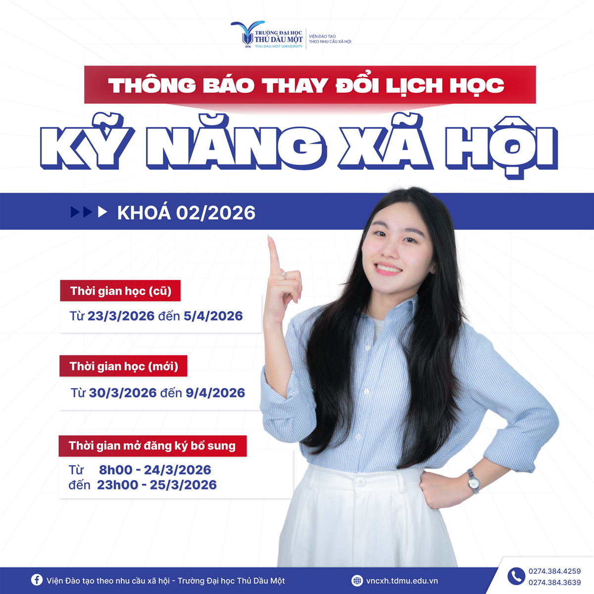 THÔNG BÁO THAY ĐỔI LỊCH HỌC KỸ NĂNG XÃ HỘI KHÓA 02/2026